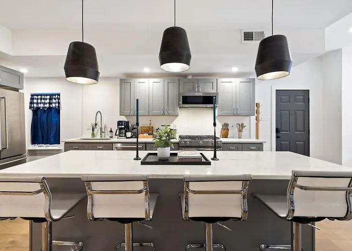 O apartamento Hostwise Stays - The Palo - No Stairs, Mexican War Streets, Family Friendly está a uma distância de 1 km da paragem East Ohio St opp Union Ave.